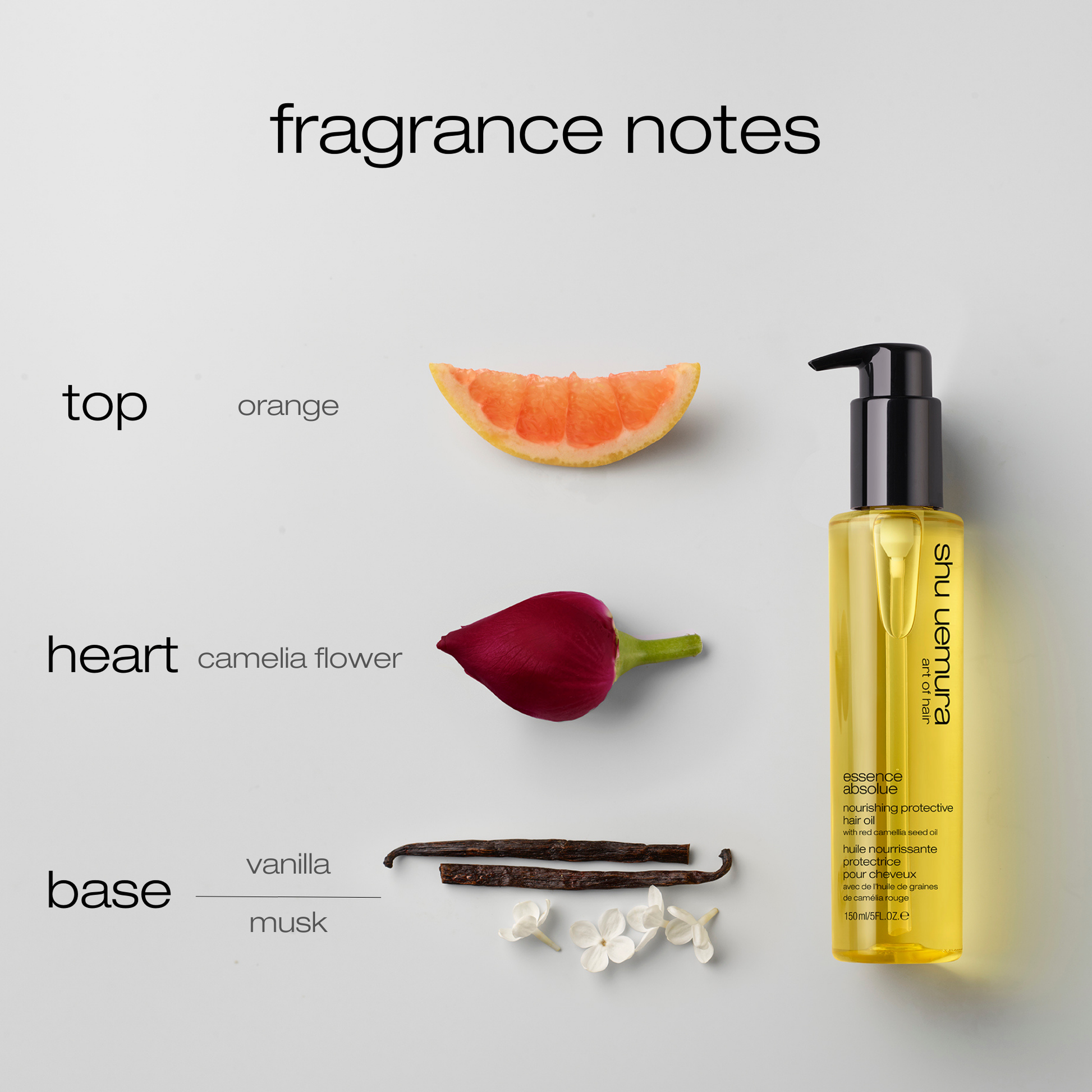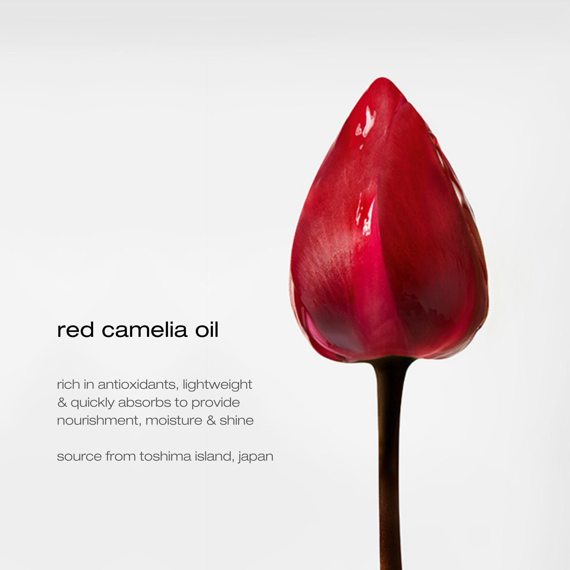 Japanese Camellia Oil (Tsubaki Oil) – rich in lipids and antioxidants, it deeply nourishes, softens, and restores shine to dry or sensitized hair.