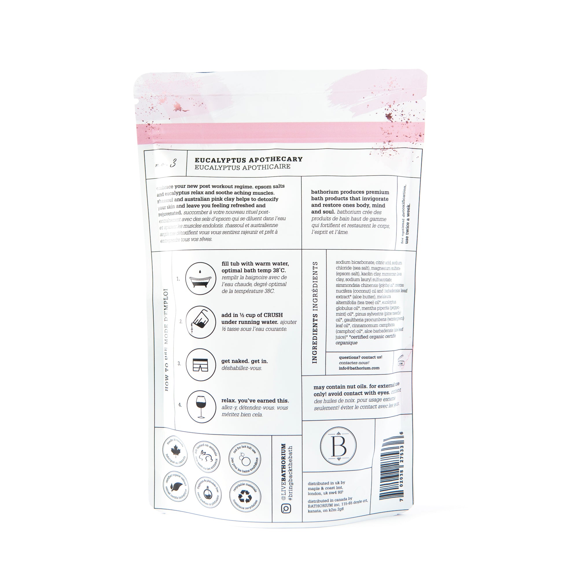 Awaken your senses and restore your body with the Bathorium Eucalyptus Apothecary Bath Crush, a revitalizing soak that blends the purity of nature with the healing power of minerals.