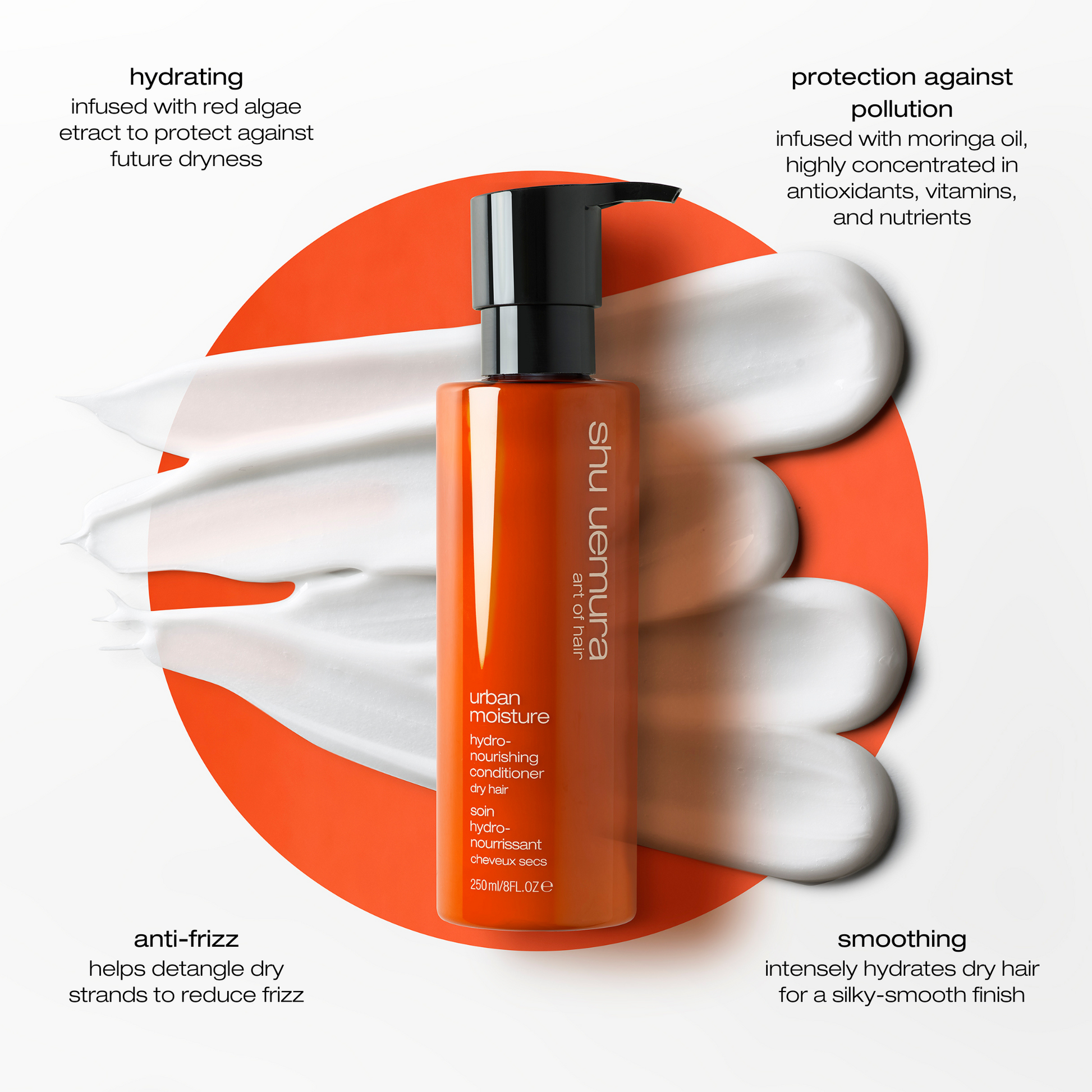 After shampooing with Urban Moisture Hydro-Nourishing Shampoo, apply a small amount to clean, damp hair. Gently massage through mid-lengths and ends, then rinse thoroughly. For extra hydration, follow with Urban Moisture Hydro-Nourishing Treatment once or twice a week.